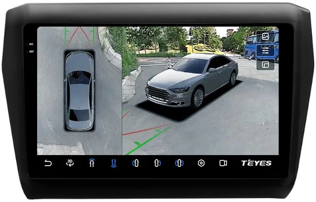 Магнитола для Suzuki Swift 5 2016-2023 (рамка матовая 9) - Teyes CC3-2K-360 на Android 10, 2K QLED, 6Гб+128Гб, CarPlay, 4G SIM-слот, 4 камеры в комплекте