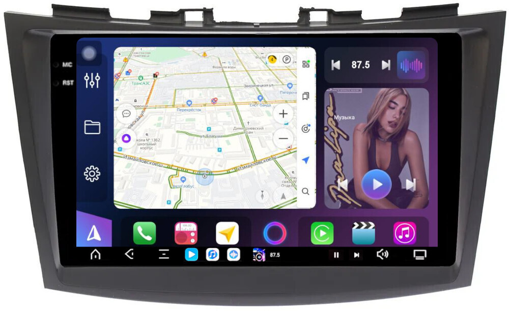 Магнитола для Suzuki Swift 4 2011-2015 - FarCar GX179M монитор 9.5" 2K QLED на Android 14, TS20, 6+128Гб, CarPlay, 4G SIM-слот