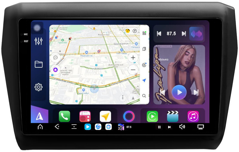Магнитола для Suzuki Swift 5 2016-2023 (рамка матовая 9) - FarCar XXL179-2M монитор 9.5" 2K QLED на Android 13, TS20, 8+256Гб, CarPlay, 4G SIM-слот