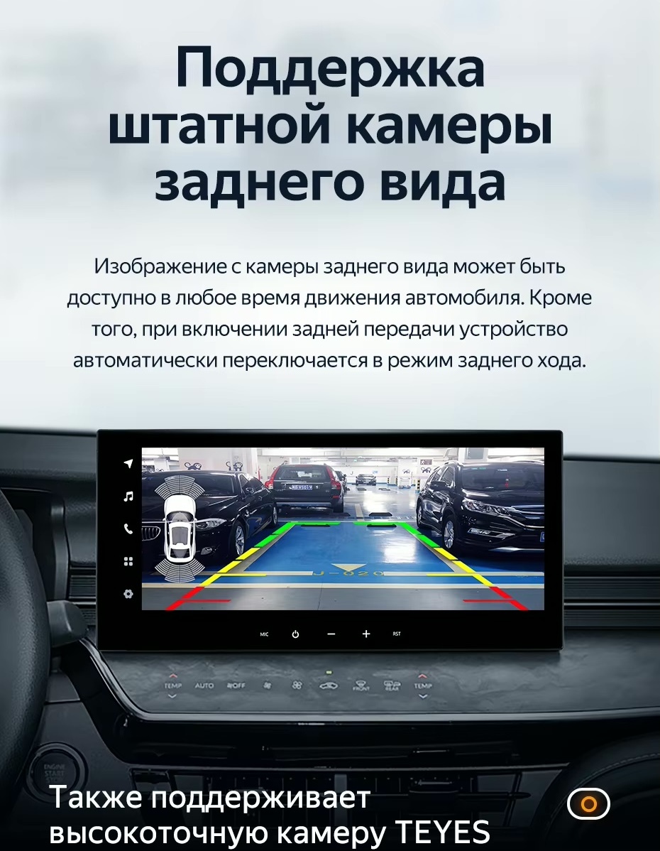 Автоматическое включение камеры на весь экран при движении задним ходом. Отдельный видео-вход для камеры заднего вида (в дополнение к линейному видео-входу). Добавляйте камеры в опциях.