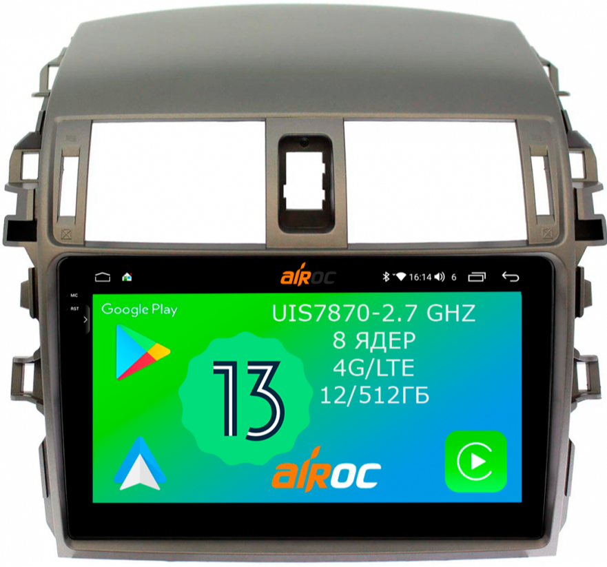 Магнитола для Toyota Corolla 2006-2013 - Airoc 2K AU-1104 Android 13, 8-ядер, 12/512Гб, SIM-слот