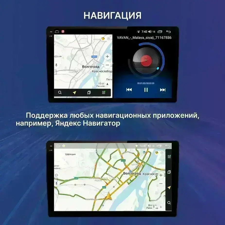 GPS+ГЛОНАСС+BeiDou приемник. Точность координат до 3 метров, антенна в комплекте. Поддержка навигации с пробками, голосовым набором маршрута и онлайн обновляемыми картами. С Google Play Market можно легко установить: Яндекс Навигатор (бесплатно), карты Google (бесплатно), Навител, Ситигид, Прогород и др. Возможность работы в фоновом режиме нескольких навигационных программ и музыки/видео одновременно!