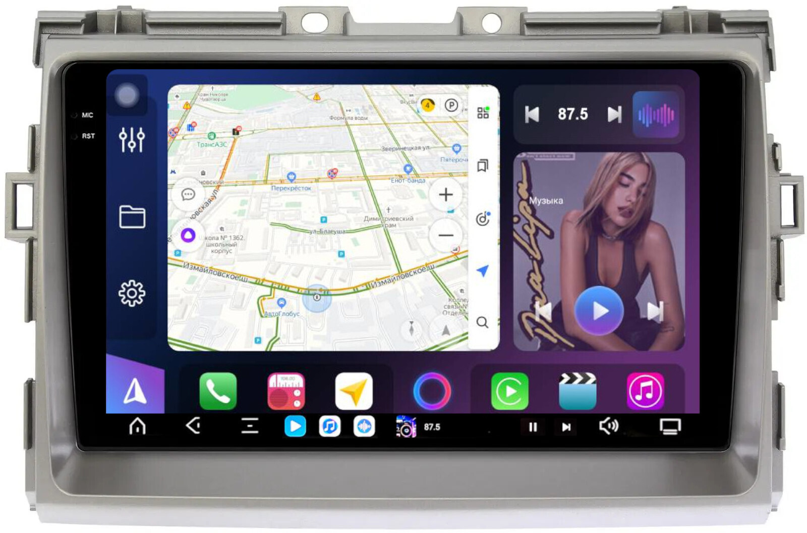 Магнитола для Toyota Estima 3 2006-2016 (без 360, рамка серая 9) - FarCar GX9-9574-9 монитор 9.5" 2K QLED на Android 14, TS20, 6+128Гб, CarPlay, 4G SIM-слот