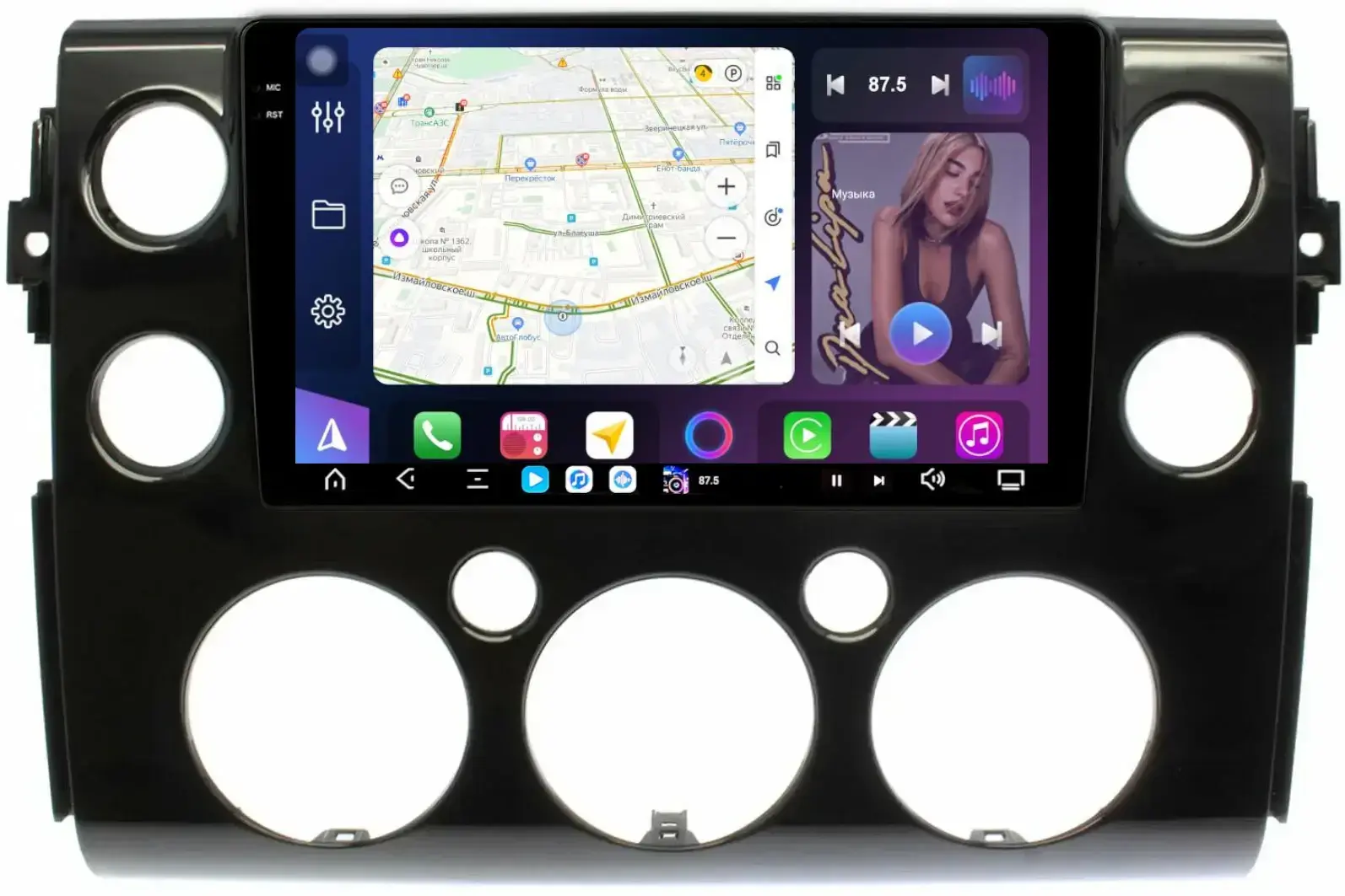 Магнитола для Toyota FJ Cruiser 2005-2022 (рамка черная) - FarCar GX3246M монитор 9.5" 2K QLED на Android 14, TS20, 6+128Гб, CarPlay, 4G SIM-слот