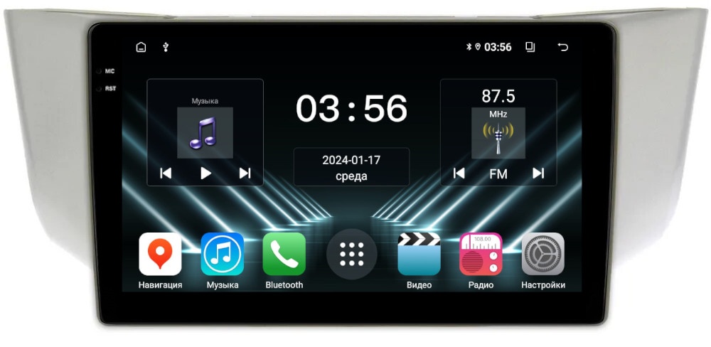 Магнитола для Toyota Harrier XU30 2003-2013, Lexus RX 2003-2009 (монохром, рамка вниз) - FarCar DX3221M монитор 9.5" IPS на Android 13, 4+64Гб, CarPlay