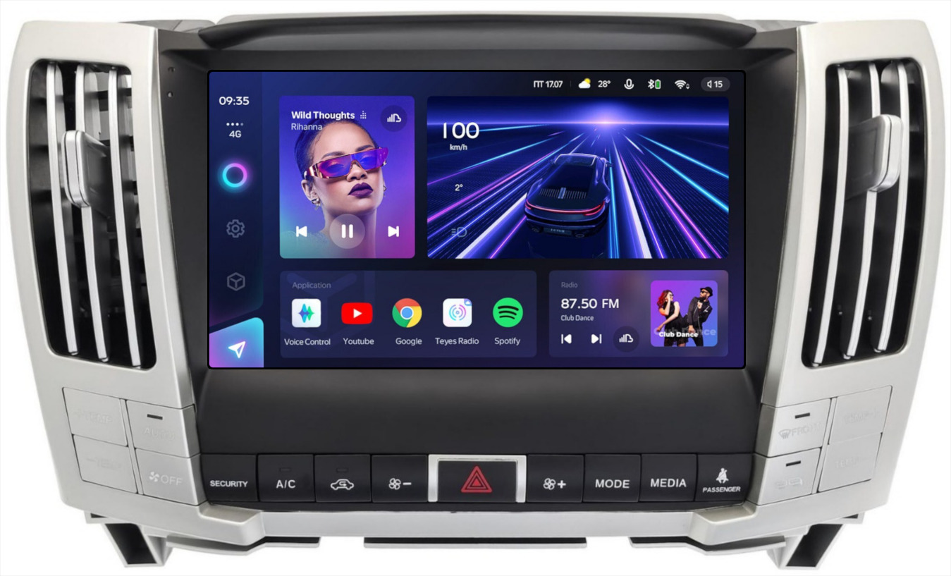 Магнитола для Toyota Harrier XU30 2003-2013, Lexus RX 2003-2009 (ШГУ цветной, рамка наверх тип 2) - Teyes CC3-2K монитор 9.5" 2K QLED на Android 10, ТОП процессор, CarPlay, 4G SIM-слот