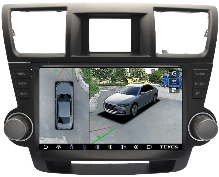 Магнитола для Toyota Highlander 2 XU40 2007-2013 (рамка с крутилками и кнопками) - Teyes CC3-2K-360 монитор 10.36" 2K QLED на Android 10, 6+128Гб, CarPlay, 4G SIM-слот, 4 камеры в комплекте