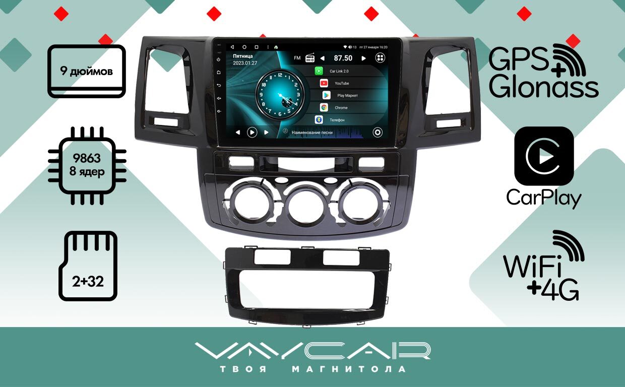 Магнитола для Toyota Hilux 2012-2015 - Vaycar VA77-1143 на Android 13, 8-ядер, 2Гб-32Гб, 4G SIM-слот