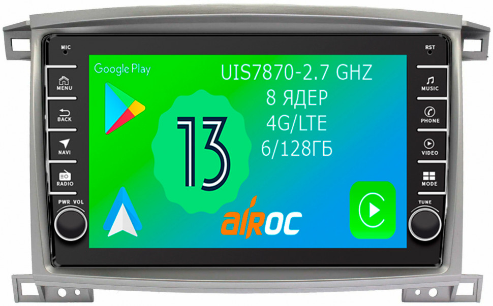 Магнитола для Toyota Land Cruiser 100, Lexus LX470 2002-2007 (экран климата снизу) - Airoc AB-1123 (кнопки и крутилки), Android 13, TS20, 6/128Гб, SIM-слот, CarPlay