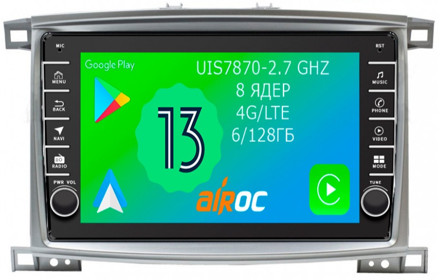 Магнитола для Toyota Land Cruiser 105 1998-2007 - Airoc AB-1121 (кнопки и крутилки), Android 13, TS20, 6/128Гб, SIM-слот, CarPlay