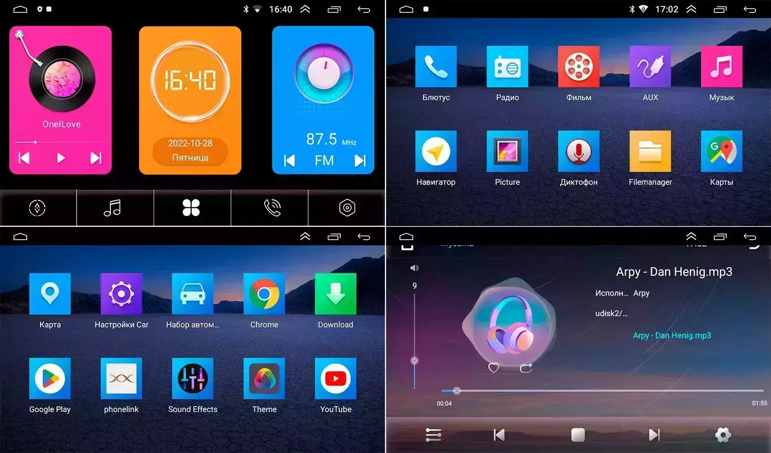 Интерфейс Android 10 разработан специально для использования в автомобиле, на Русском языке. Пользоваться навигацией и устанавливать приложения с Google Play Market так же просто, как и на обычном смартфоне или планшете