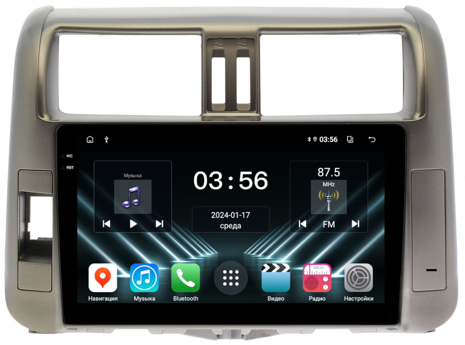 Магнитола для Toyota Land Cruiser Prado 150 2009-2013 (рамка бронза) - FarCar DX065M монитор 9.5" IPS на Android 13, 4+64Гб, CarPlay