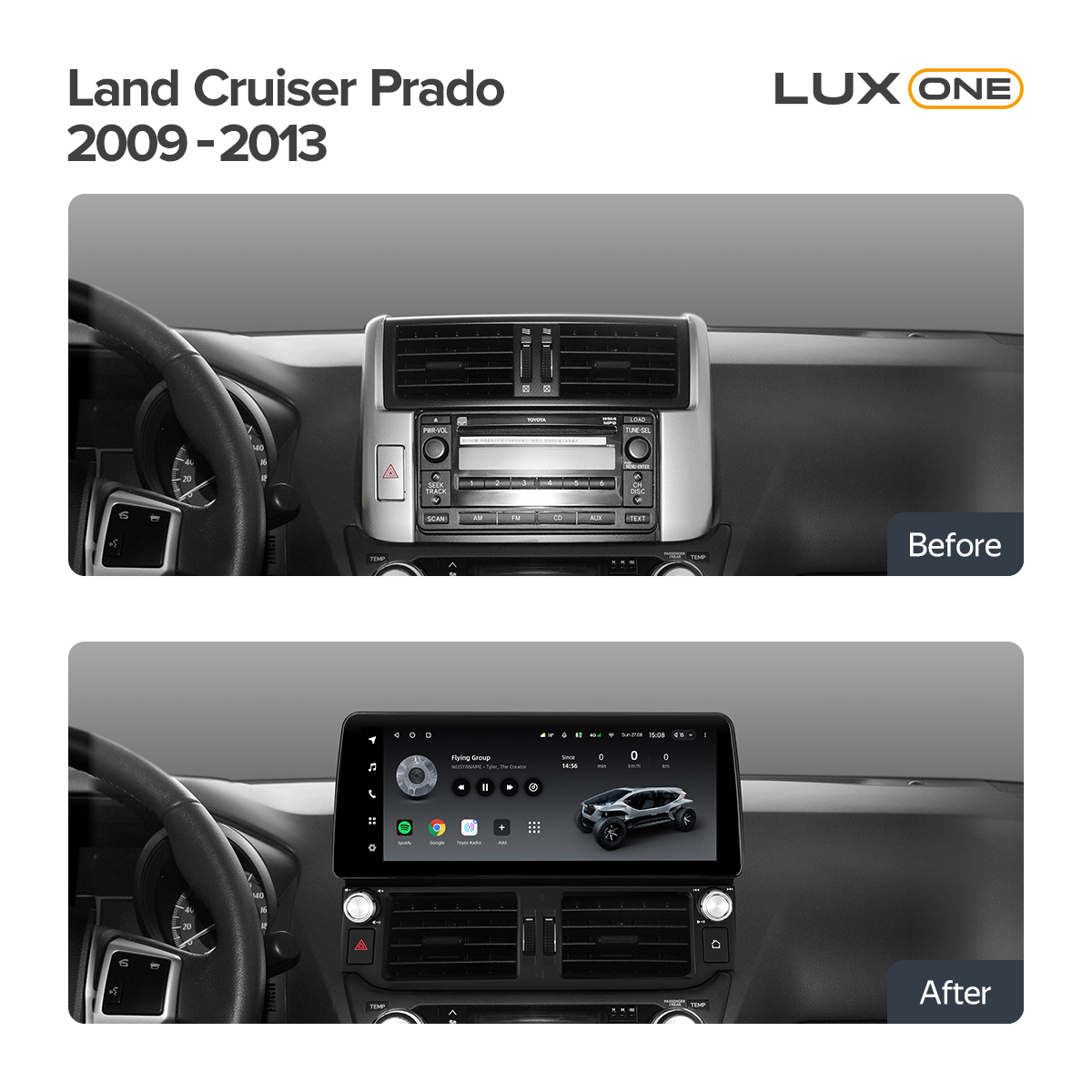 Магнитола для Toyota Land Cruiser Prado 150 2009-2013 (поддержка JBL) - Teyes LUX ONE монитор 12.3" 2K QLED на Android 10, CarPlay, 4G SIM-слот, 6/128ГБ