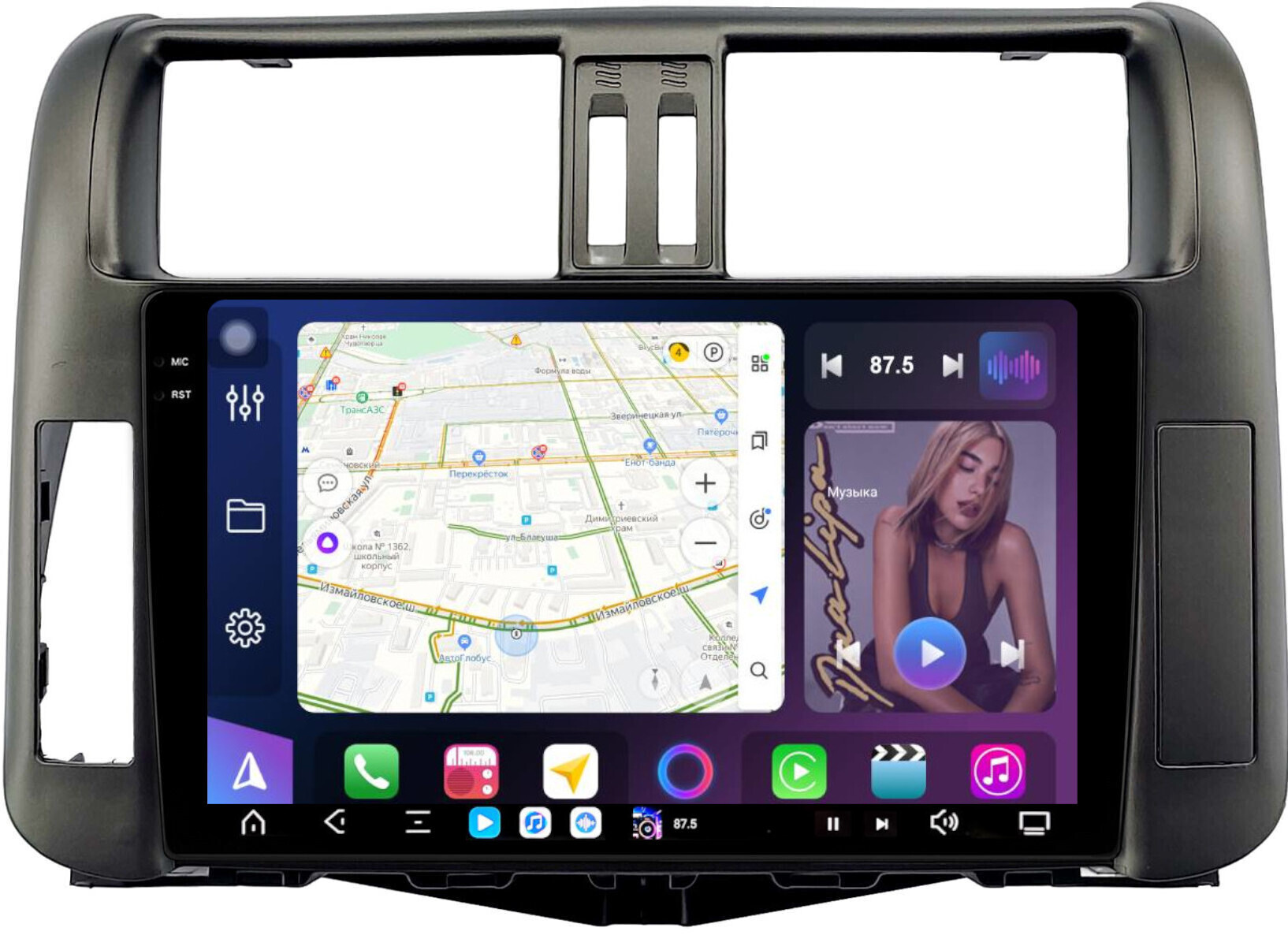 Магнитола для Toyota Land Cruiser Prado 150 2009-2013 (рамка графит) - FarCar GX9-7041G монитор 9.5" 2K QLED на Android 14, TS20, 6+128Гб, CarPlay, 4G SIM-слот