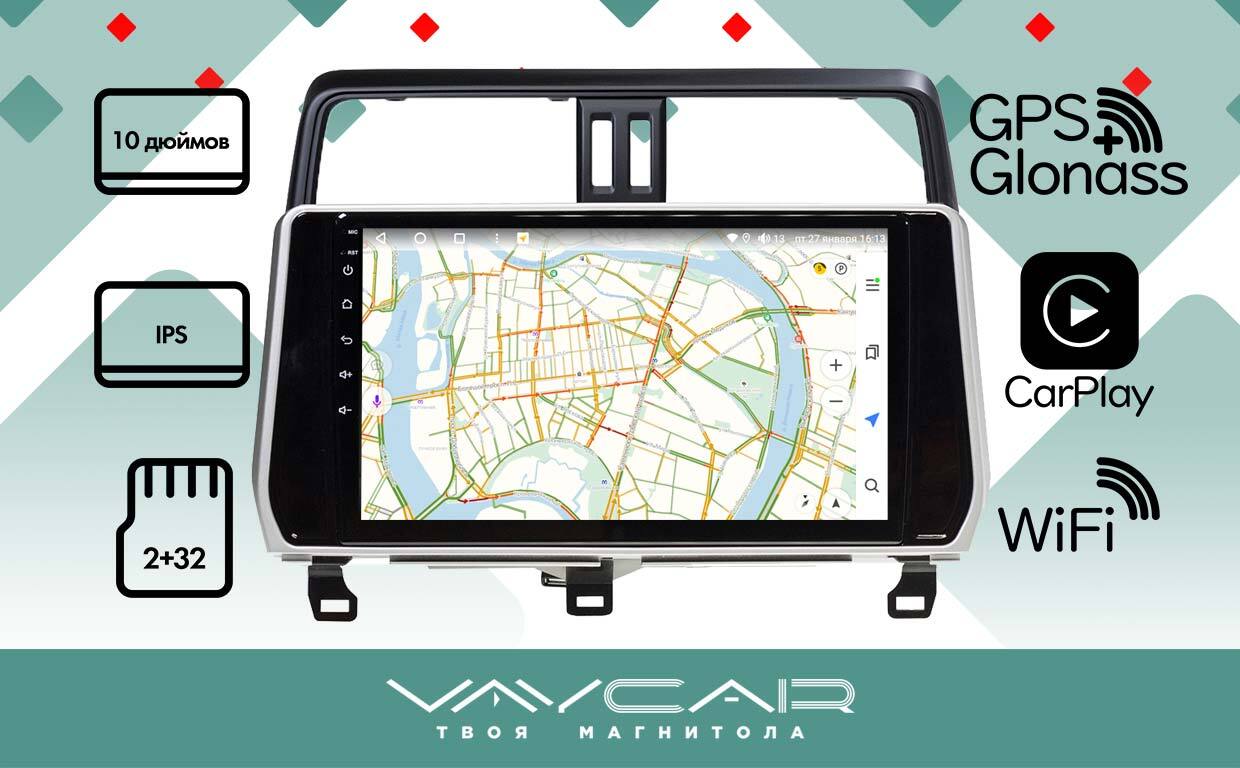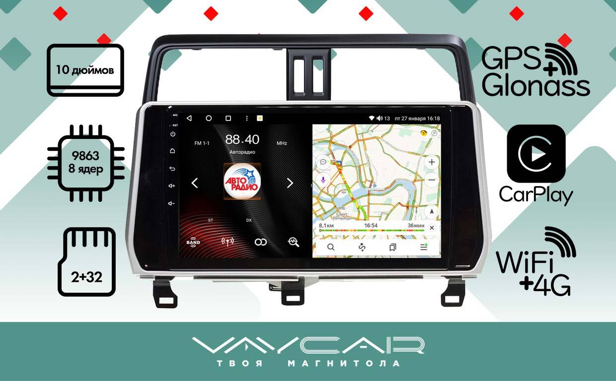Магнитола для Toyota Land Cruiser Prado 150 2017-2023 - Vaycar VA77-1053 на Android 13, 8-ядер, 2Гб-32Гб, 4G SIM-слот