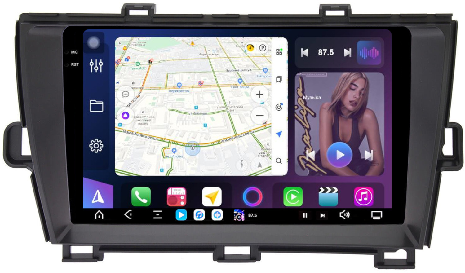 Магнитола для Toyota Prius 30 2009-2015 (левый руль, рамка черная) - FarCar GX3025M монитор 9.5" 2K QLED на Android 14, TS20, 6+128Гб, CarPlay, 4G SIM-слот