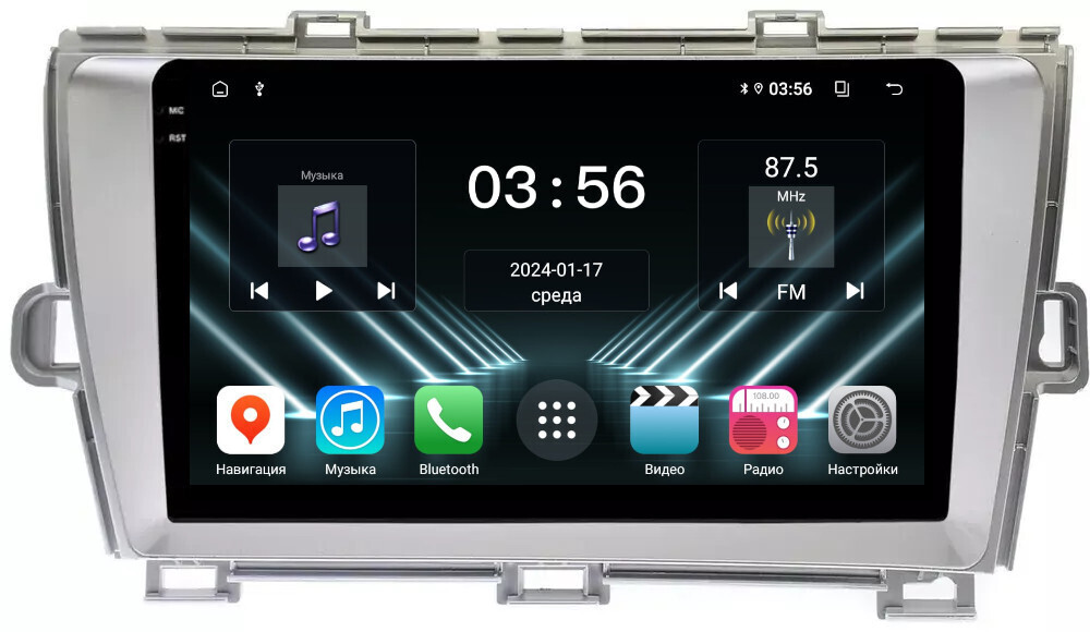 Магнитола для Toyota Prius 30 2009-2015 (левый руль, рамка серебро) - FarCar DX9-9539LS монитор 9.5" IPS на Android 13, 4+64Гб, CarPlay