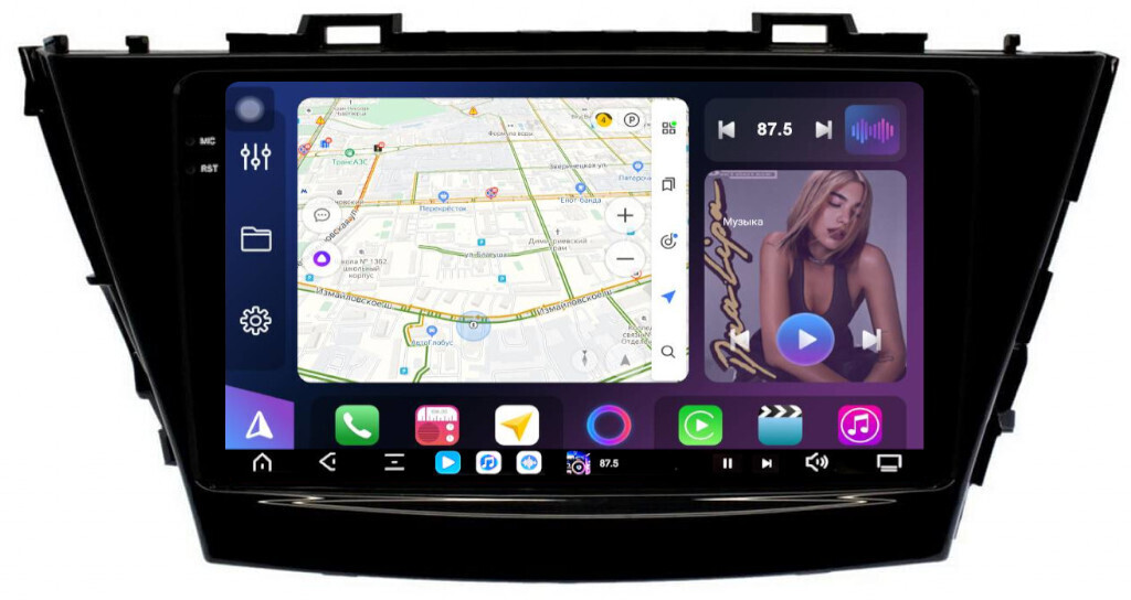 Магнитола для Toyota Prius Alpha 40 2014-2021 (правый руль) - FarCar GX9-9533F2 монитор 9.5" 2K QLED на Android 14, TS20, 6+128Гб, CarPlay, 4G SIM-слот