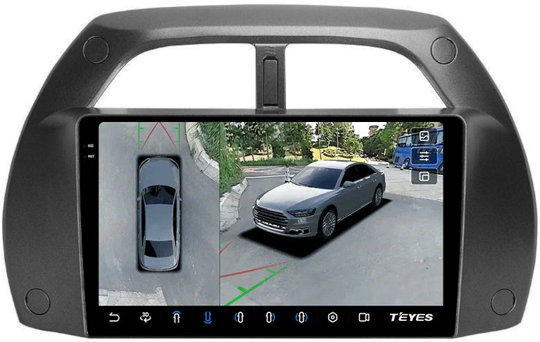 Магнитола для Toyota RAV4 2 2000-2003 - Teyes CC3-2K-360 монитор 9.5" 2K QLED на Android 10, 6Гб+128Гб, CarPlay, 4G SIM-слот, 4 камеры в комплекте
