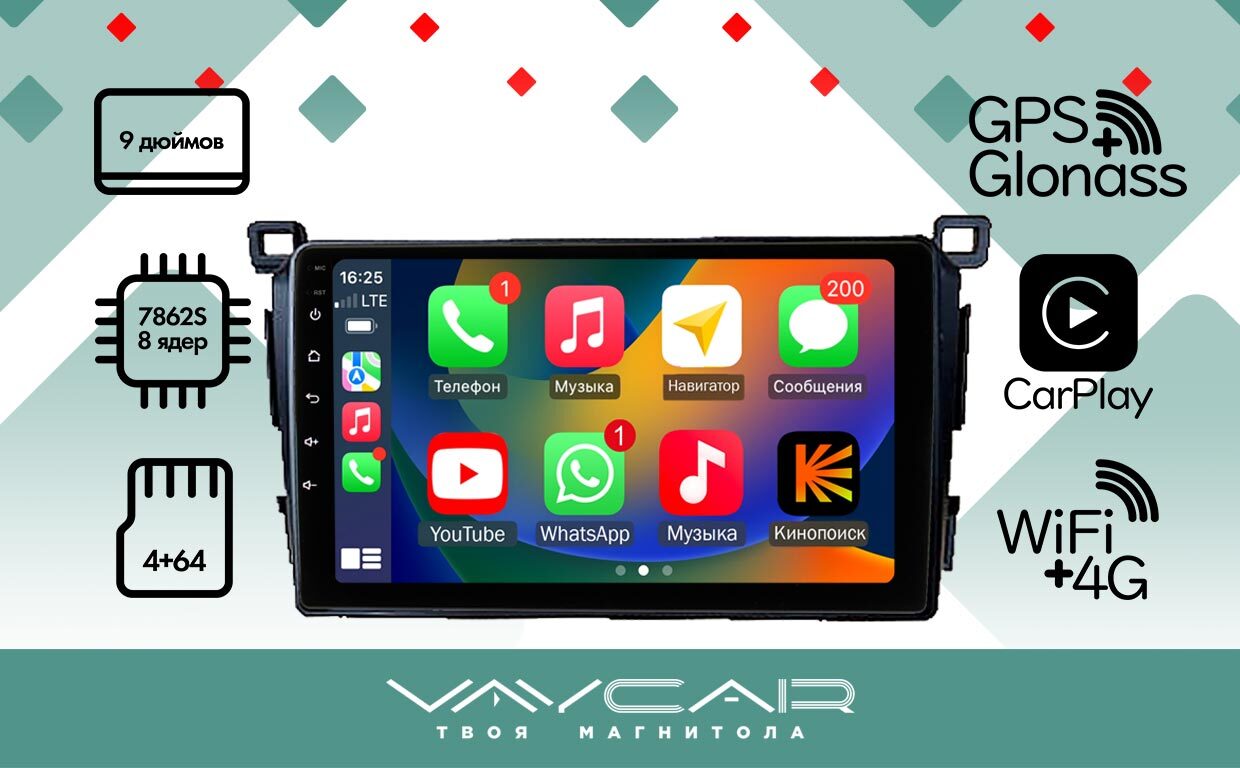 Магнитола для Toyota RAV4 2012-2019 - Vaycar VA77-0468 на Android 13, 8-ядер, 4G SIM-слот