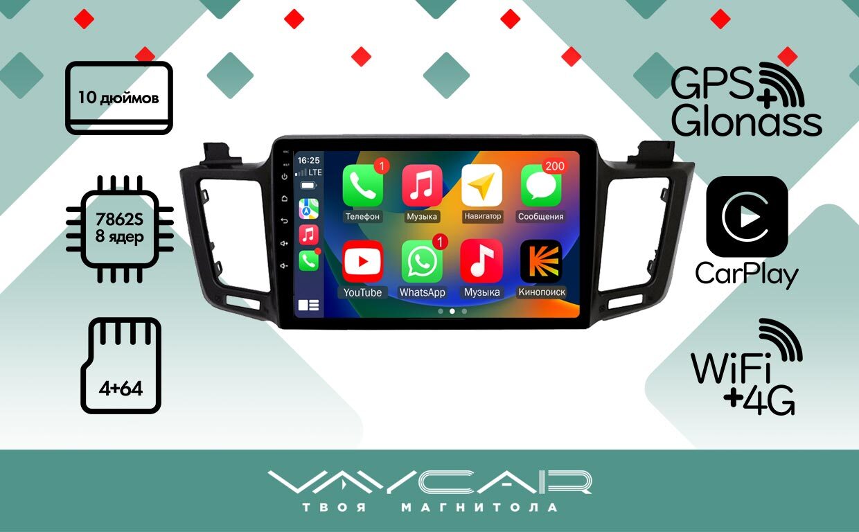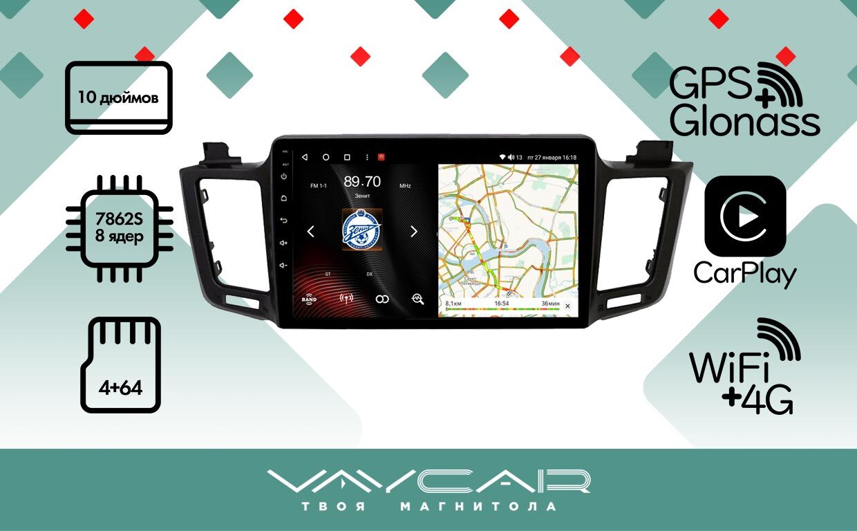 Магнитола для Toyota RAV4 2012-2019 - Vaycar VA77-0468 на Android 13, 8-ядер, 4G SIM-слот