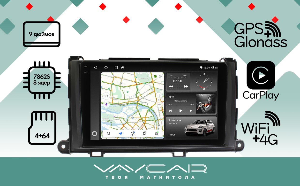 Магнитола для Toyota Sienna 2010-2014 - Vaycar VA77-1887-2K на Android 13, 8-ядер, 2K QLED, ТОП процессор, CarPlay,4G SIM-слот
