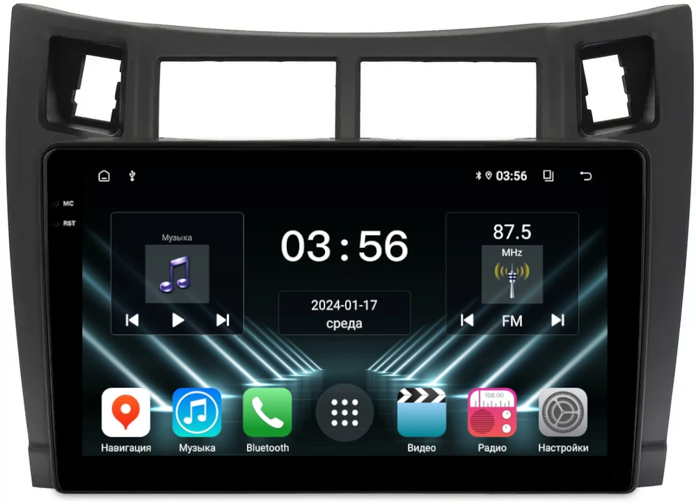 Магнитола для Toyota Vitz 2, Yaris 2 2005-2011 (рамка черная) - FarCar DX3022M монитор 9.5" IPS на Android 13, 4+64Гб, CarPlay
