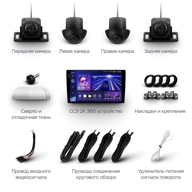 Фирменный голосовой помощник, Оптический аудио-выход, 4 шт. камеры 360 в комплекте