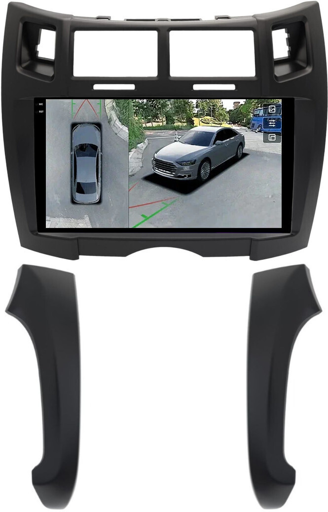 Магнитола для Toyota Vitz 2, Yaris 2 2005-2011 (рамка черная тип 2) - FarCar BX9-360-9647F2B монитор 9.5" 2K QLED на Android 13, 6Гб+128Гб, CarPlay, 4G SIM-слот, 4 камеры в комплекте