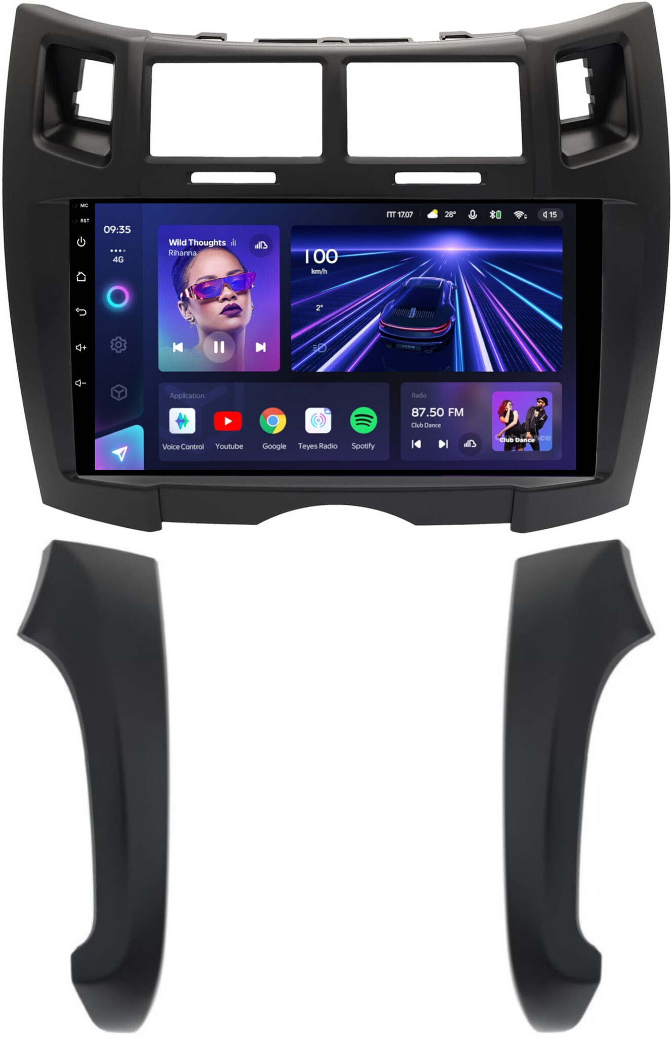 Магнитола для Toyota Vitz 2, Yaris 2 2005-2011 (рамка черная тип 2) - Teyes CC3L на Android 10, 8-ядер, CarPlay, 4G SIM-слот