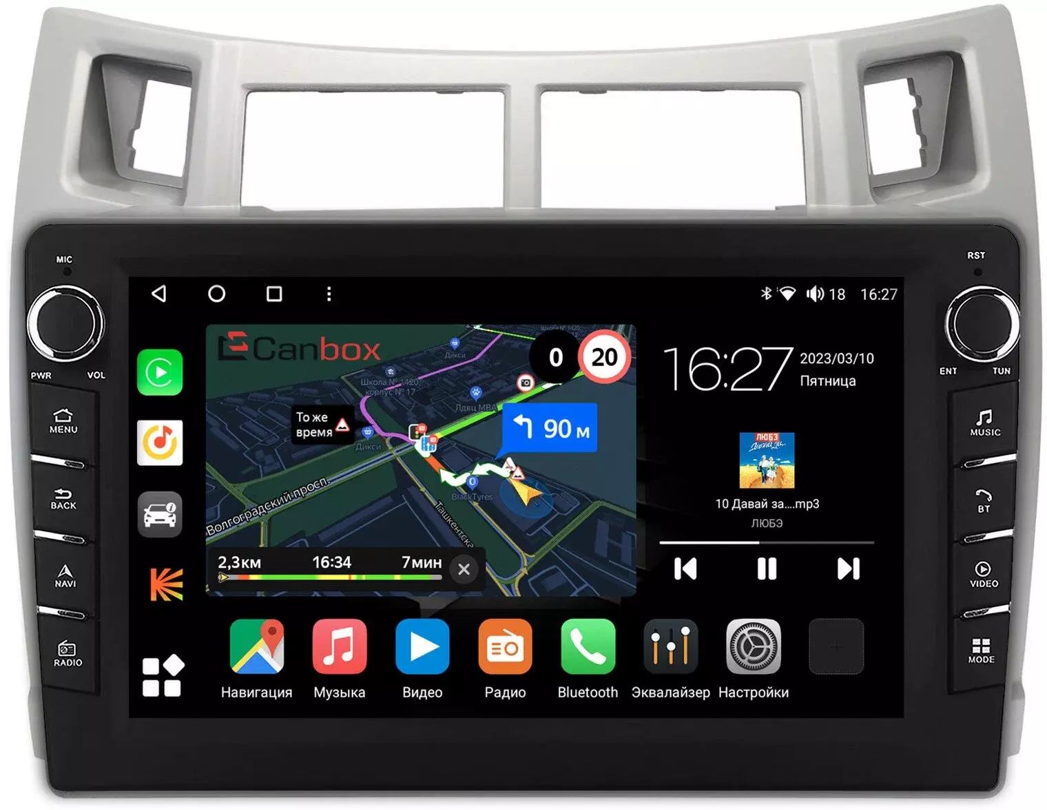 Магнитола для Toyota Vitz 2, Yaris 2 2005-2011 (рамка серебро) - Canbox 9-100 Android 10, ТОП процессор, CarPlay, 4G SIM-слот
