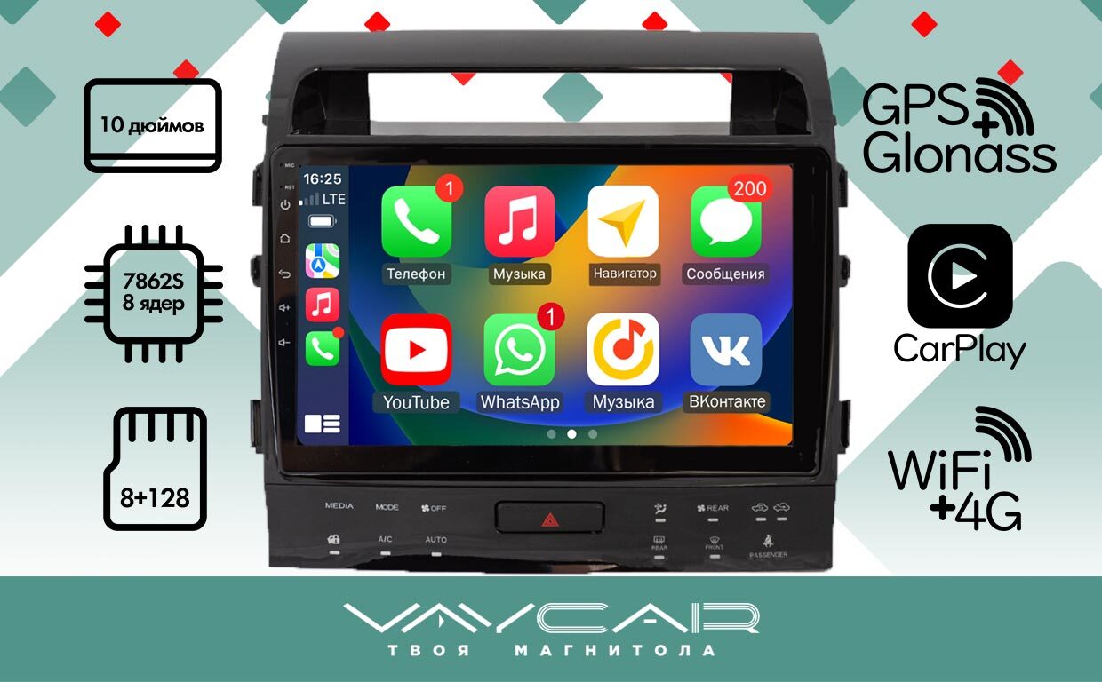 Магнитола для Toyota Land Cruiser 200 2008-2015 (климат на ШГУ, с JBL) - Vaycar VA77-9381-2K на Android 13, 8-ядер, 2K QLED, ТОП процессор, CarPlay,4G SIM-слот