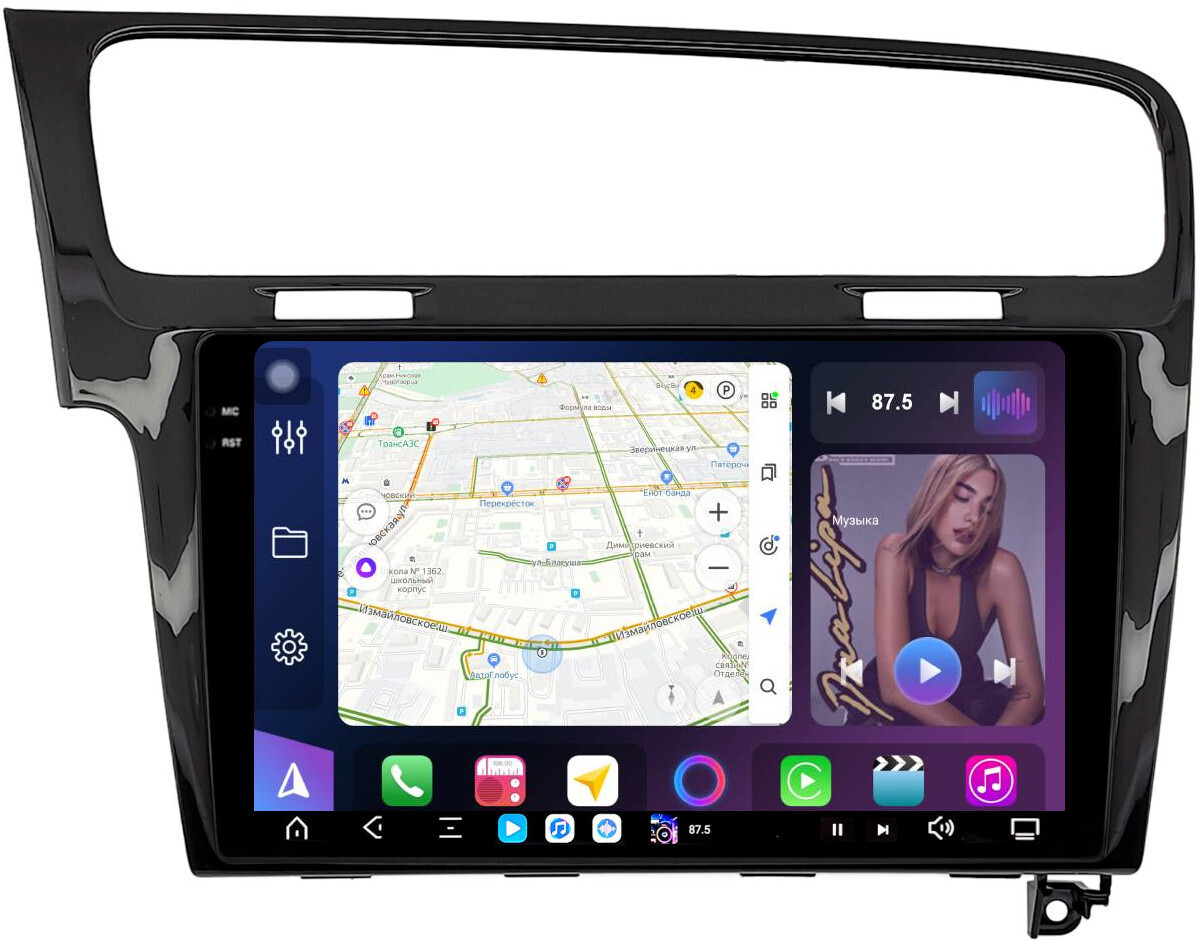 Магнитола для Volkswagen Golf 7 2012-2020 (рамка черный глянец) - FarCar XXL257M монитор 10.36" 2K QLED на Android 13, TS20, 8+256Гб, CarPlay, 4G SIM-слот
