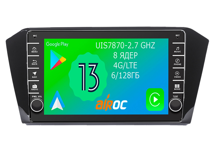 Магнитола для Volkswagen Passat 2015+ (без штатного усилителя) - Airoc AB-3713 (кнопки и крутилки), Android 13, TS20, 6/128Гб, SIM-слот, CarPlay