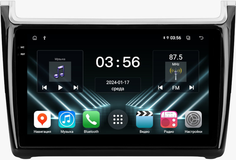 Магнитола для Volkswagen Polo 5 2009-2020 (рамка черная глянцевая) - FarCar DX9-8080GL монитор 9.5" IPS на Android 13, 4+64Гб, CarPlay
