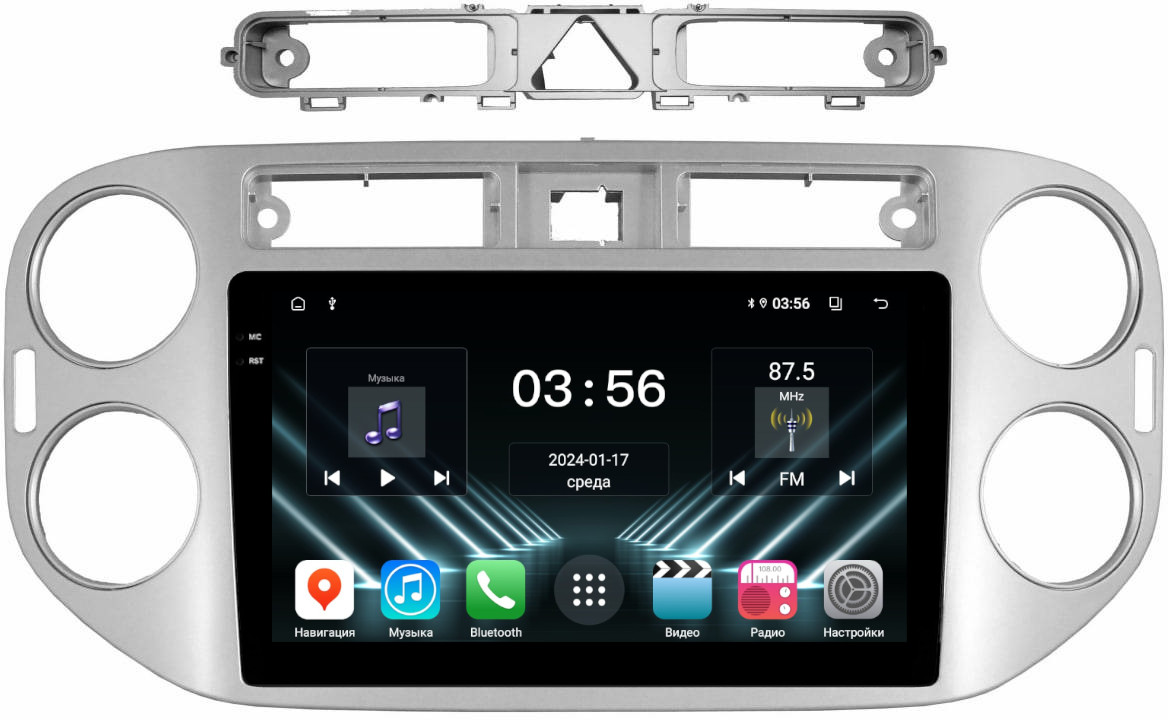 Магнитола для Volkswagen Tiguan 1 2007-2011, Golf Plus (аварийка треугольная, рамка серебро) - FarCar DX489M монитор 9.5" IPS на Android 13, 4+64Гб, CarPlay