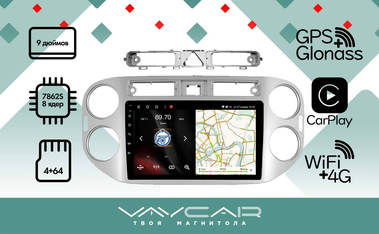 Магнитола для Volkswagen Tiguan 2007-2016 (рамка белая) - Vaycar VA81-0489 на Android 13, 8-ядер, 4G SIM-слот