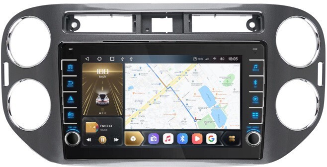 Магнитола для Volkswagen Tiguan 2011-2017 (рамка серая) - Kuberg OL-9908-2 (кнопки и крутилки) Android 13, TS20, 6+128Гб, CarPlay, 4G SIM-слот
