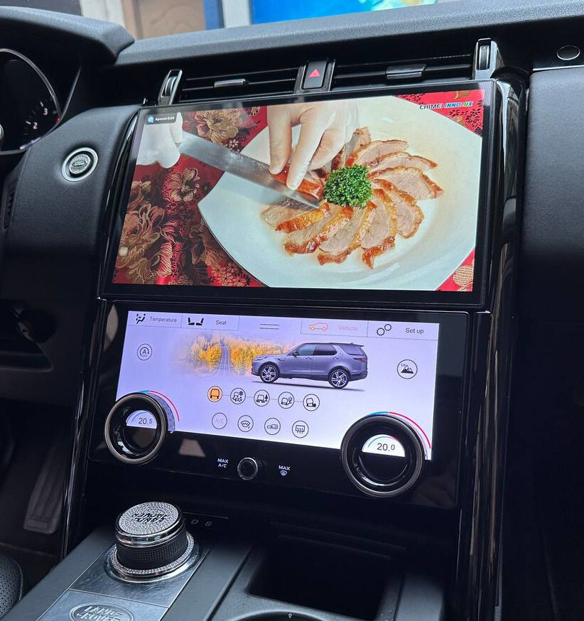 Замена заводского монитора и климат-контроля Land Rover Evoque 2016-2019 на 13,3-дюймовый сенсорный экран высокого разрешения (1920х1080) и сенсорную панель климат-контроля с предустановленной ОС Android 11. Монитор устанавливается в штатное место автомобиля взамен оригинального монитора и органично вписывается в интерьер салона, при этом сохраняются все штатные функции: FM радио, работа кнопок на руле, штатная камера заднего вида, парктроник и т.д…