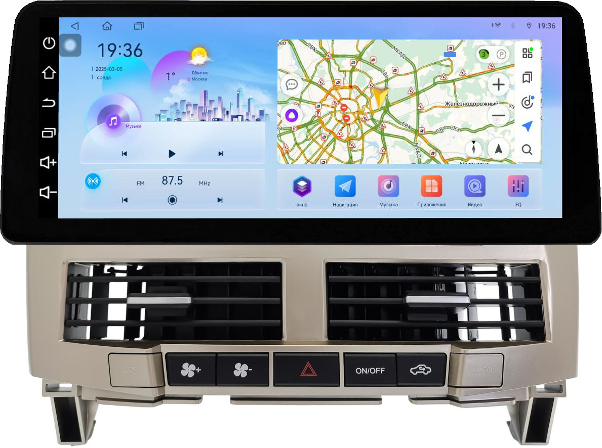 Магнитола Lexus RX 2003-2009, Toyota Harrier XU30 2003-2013 (ШГУ цветной, рамка серо-бежевая LUX) - FarCar монитор 12.3" 2K QLED на Android 14, TS10, CarPlay, 4G SIM-слот