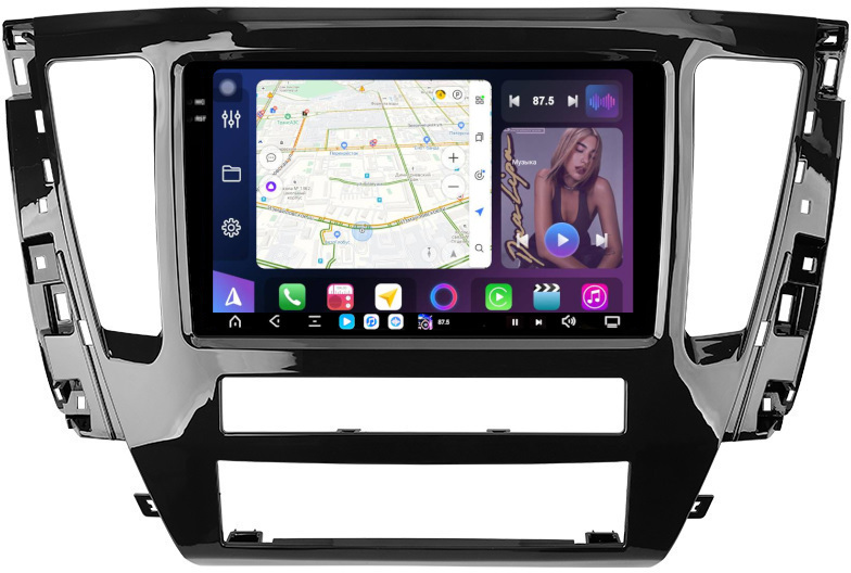 Магнитола Mitsubishi Pajero Sport 3 2020-2024, Montero Sport (прямоугольный климат, рамка 9) - FarCar GX9-7076N9 монитор 9.5" 2K QLED на Android 14, TS20, 6+128Гб, CarPlay, 4G SIM-слот