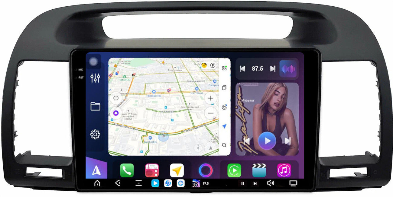 Магнитола Toyota Camry 30 2001-2006 (рамка черная) - FarCar GX3020M монитор 9.5" 2K QLED на Android 14, TS20, 6+128Гб, CarPlay, 4G SIM-слот