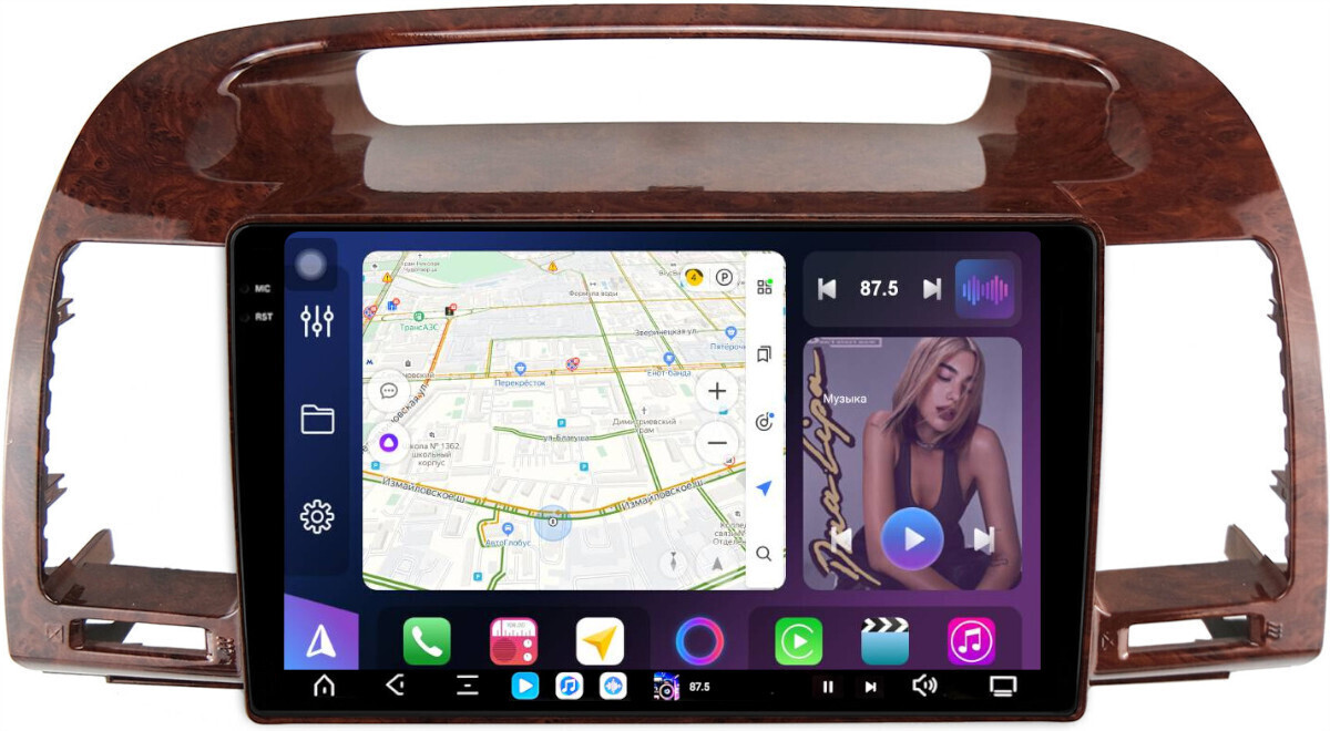 Магнитола Toyota Camry 30 2001-2006 (рамка дерево 1) - FarCar GX3020M монитор 9.5" 2K QLED на Android 14, TS20, 6+128Гб, CarPlay, 4G SIM-слот