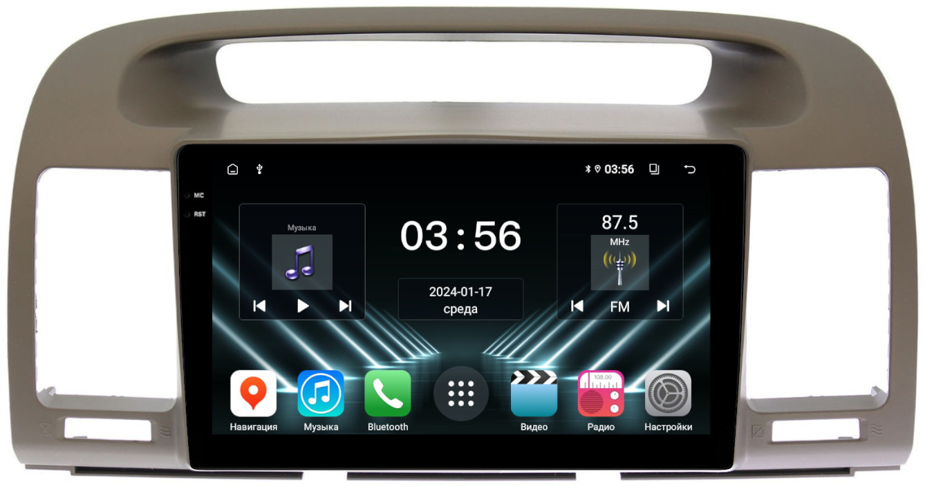 Магнитола Toyota Camry 30 2001-2006 (рамка оливковая) - FarCar DX9-8200L монитор 9.5" IPS на Android 13, 4+64Гб, CarPlay