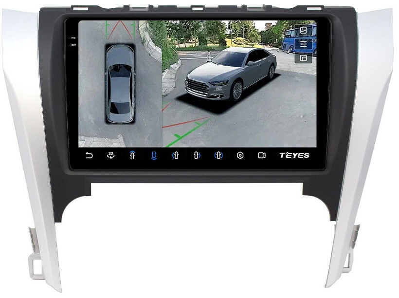 Магнитола Toyota Camry 50 2011-2014 (рамка серебристо-черная 9) - Teyes CC3-2K-360 на Android 10, 2K QLED, 6Гб+128Гб, CarPlay, 4G SIM-слот, 4 камеры в комплекте