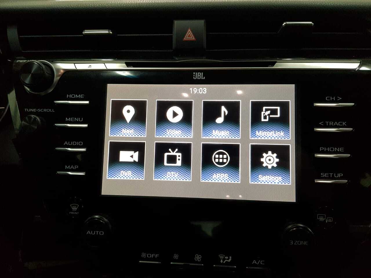 Данный навигационный блок на системе Андроид подходит для Тойота Камри В70 2018+ годов выпуска, для комплектаций с заводской мультимедиа-системой Touch & Go 3 (Panasonic) и JBL аудиосистемой, полностью поддерживается камеры круговой обзора и управлением климатом.