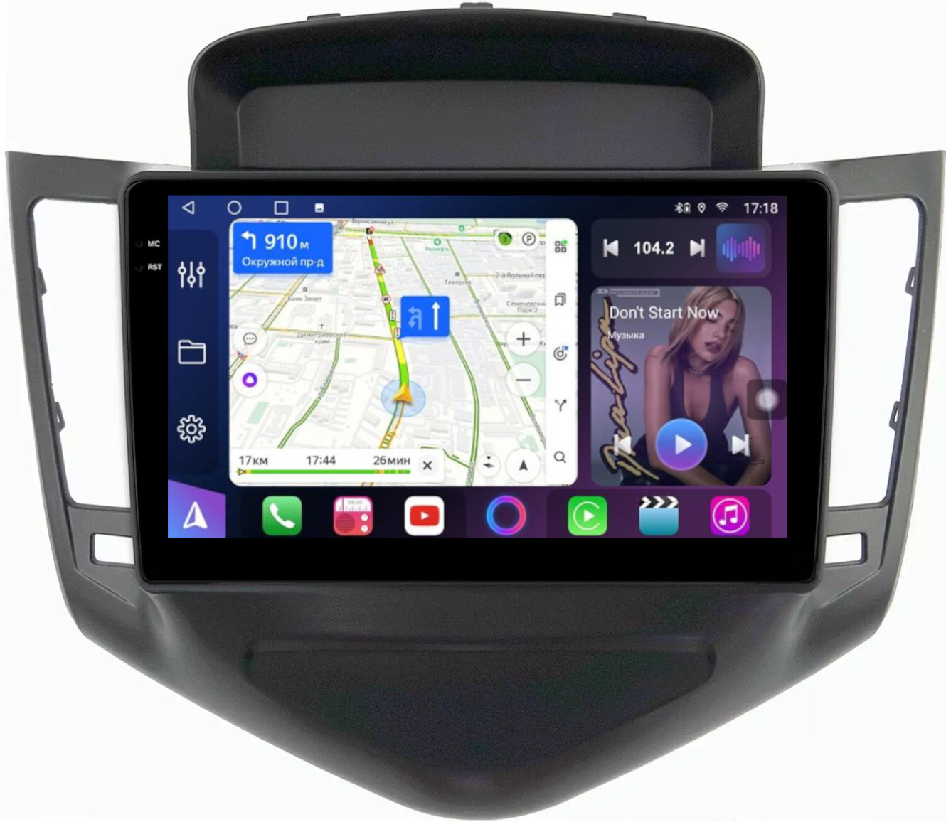 Магнитола для Chevrolet Cruze 1 2009-2012 (рамка черная) - FarCar 045M монитор 9.5" QLED на Android 14, TS18, CarPlay, 4G SIM-слот