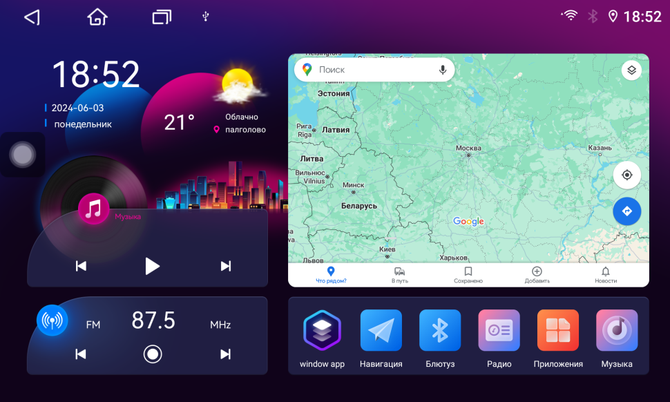 Интерфейс Android 13 разработан специально для использования в автомобиле, на Русском языке. Пользоваться навигацией и устанавливать приложения с Google Play Market так же просто, как и на обычном смартфоне или планшете