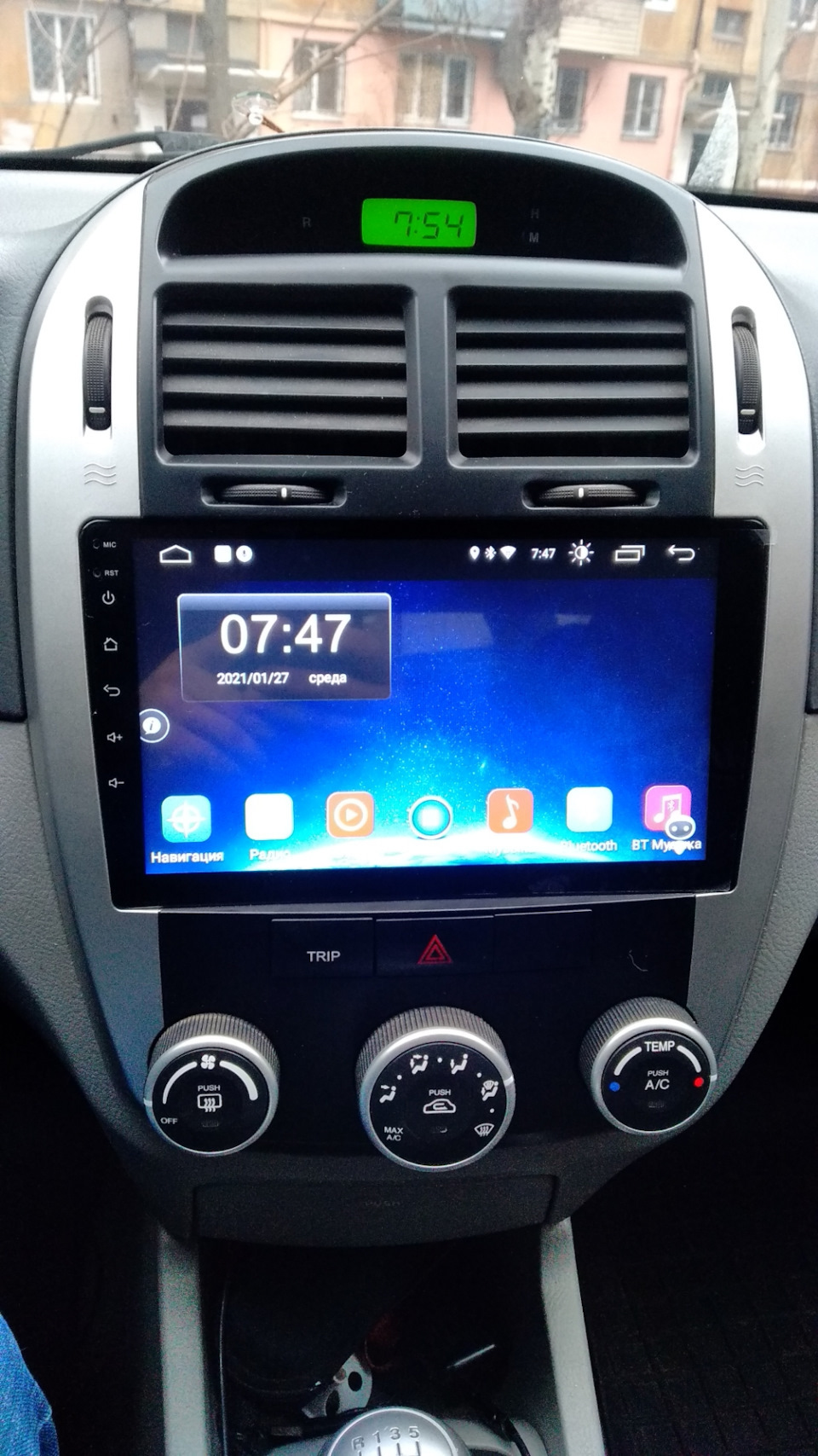 Включать видео-вход можно иконкой на главном экране (AUX) или назначить на кнопку магнитолы или руля (уточняйте).