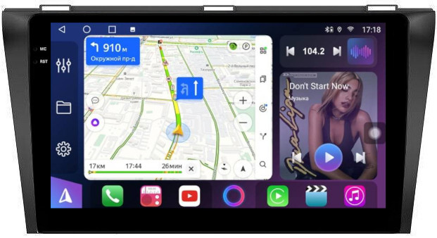 Магнитола для Mazda 3 BK, Axela 2003-2009 - FarCar 161M монитор 9.5" QLED на Android 14, TS18, CarPlay, 4G SIM-слот